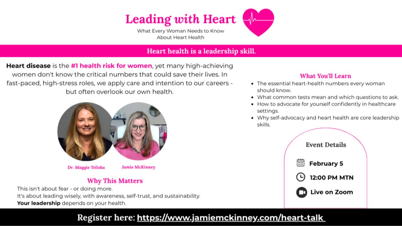 I’ll be joined by Dr. Maggie Teliska — an energy industry leader, WomenHeart® Champion, and patient experience advocate — for a practical, empowering discussion about heart health through a leadership lens.