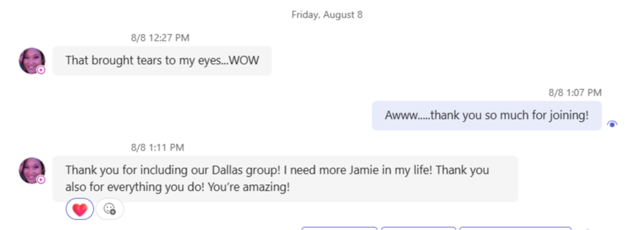 "Now I know why I was here today. It is because I needed to hear this message. Not only did I hear it, I've already begun to act on it!"